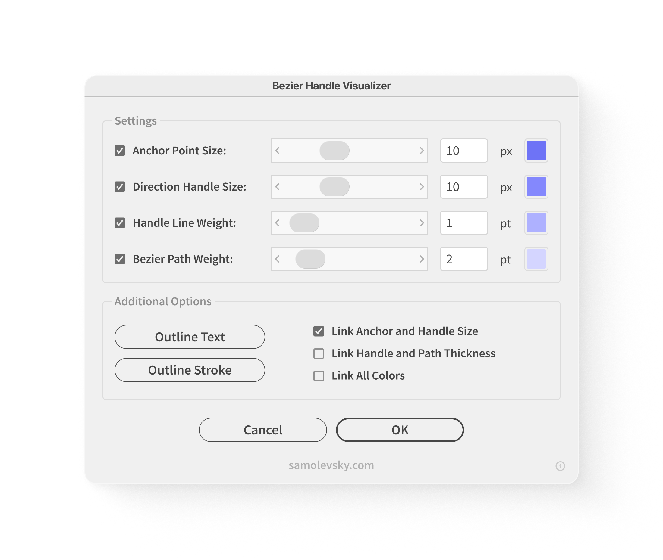 - Adjust stroke thickness for handle lines and Bezier paths.