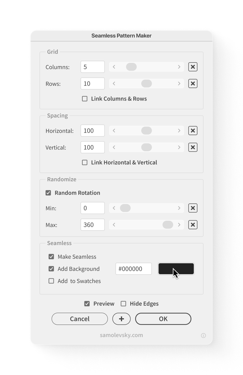 - Check "Make Seamless" to create a clipping mask for seamless tiling.