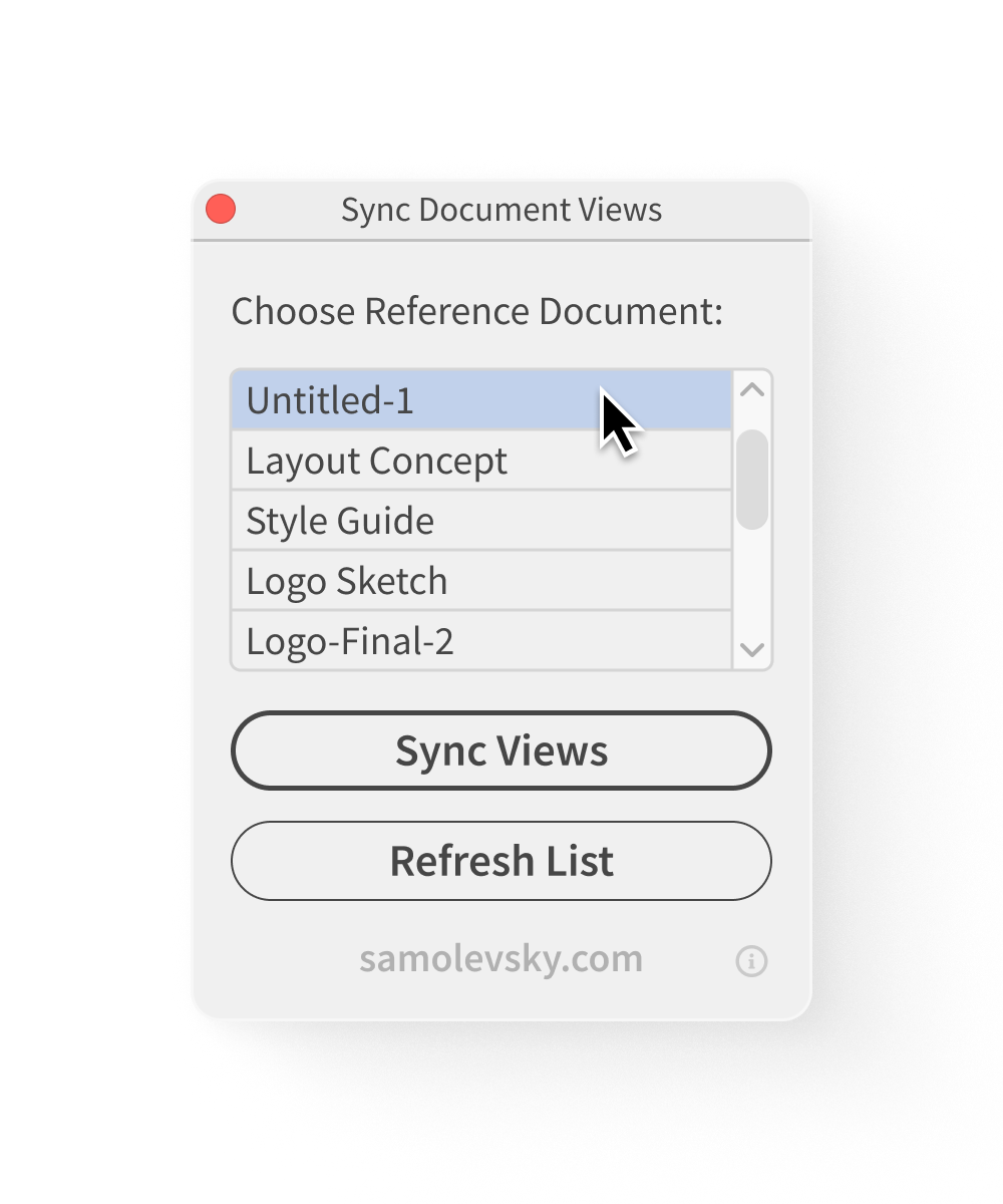 The Sync Document Views script is a powerful Adobe Illustrator tool that allows you to synchronize the zoom level and center point (view position) across multiple open documents simultaneously. This is particularly useful when working with multiple related documents, such as different versions of a design, multi-artboard projects, or when comparing documents side by side.