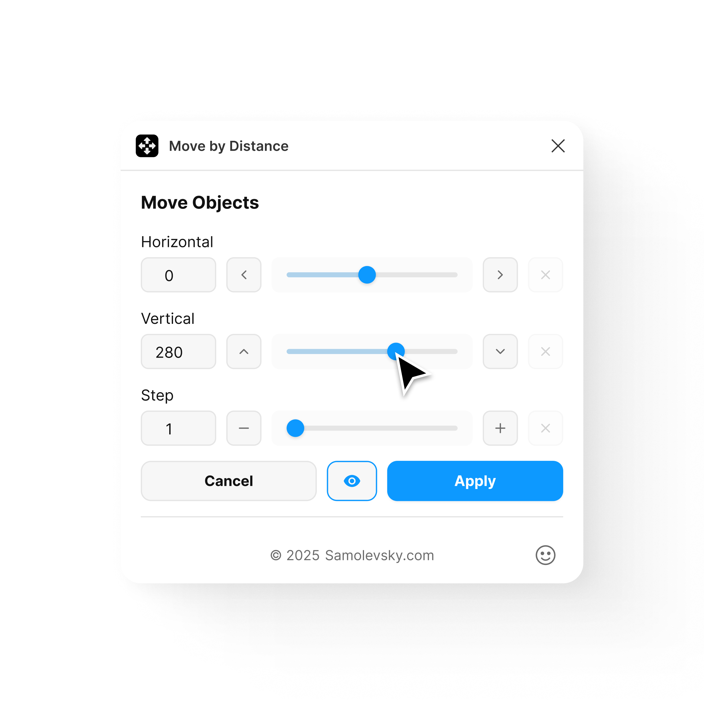 Move by Distance streamlines your Figma workflow by providing precise, pixel-perfect object positioning with an intuitive interface and real-time preview.