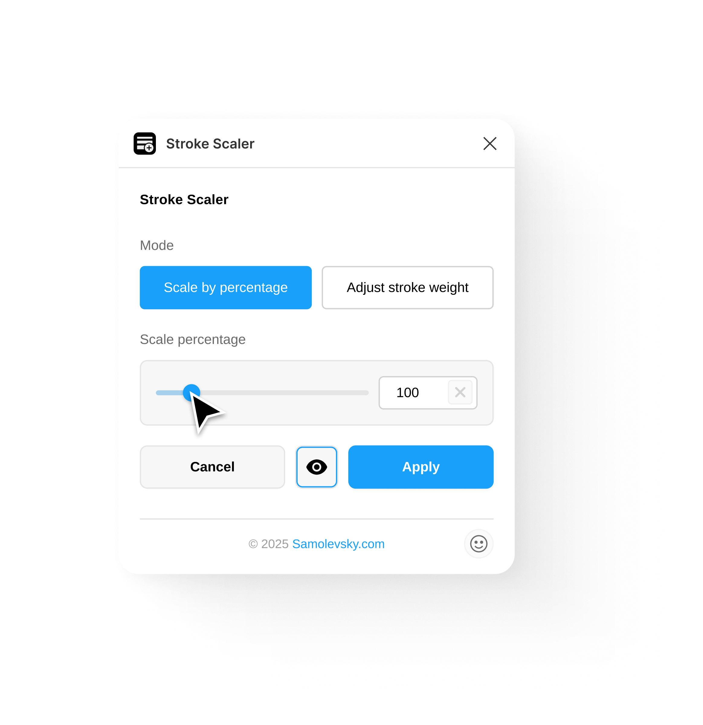Stroke Scaler is a powerful yet simple Figma plugin designed to help designers quickly adjust stroke weights across multiple objects. Whether you need to scale strokes proportionally or adjust them by a fixed amount, this plugin provides an intuitive interface with live preview capabilities.