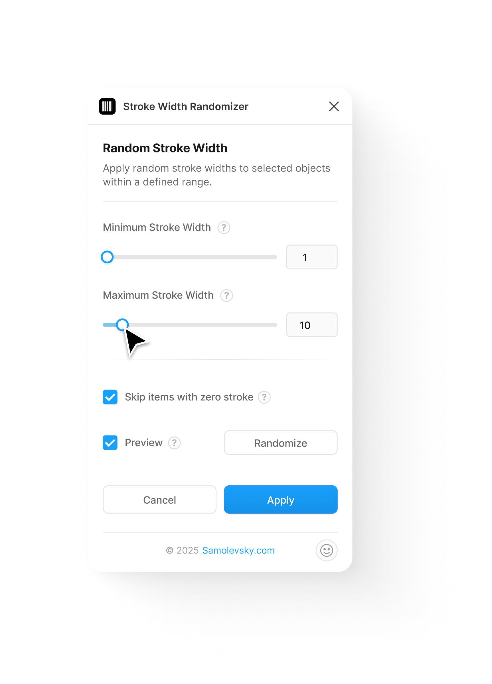 - Customizable Range: Set minimum and maximum stroke width values (0-100px)