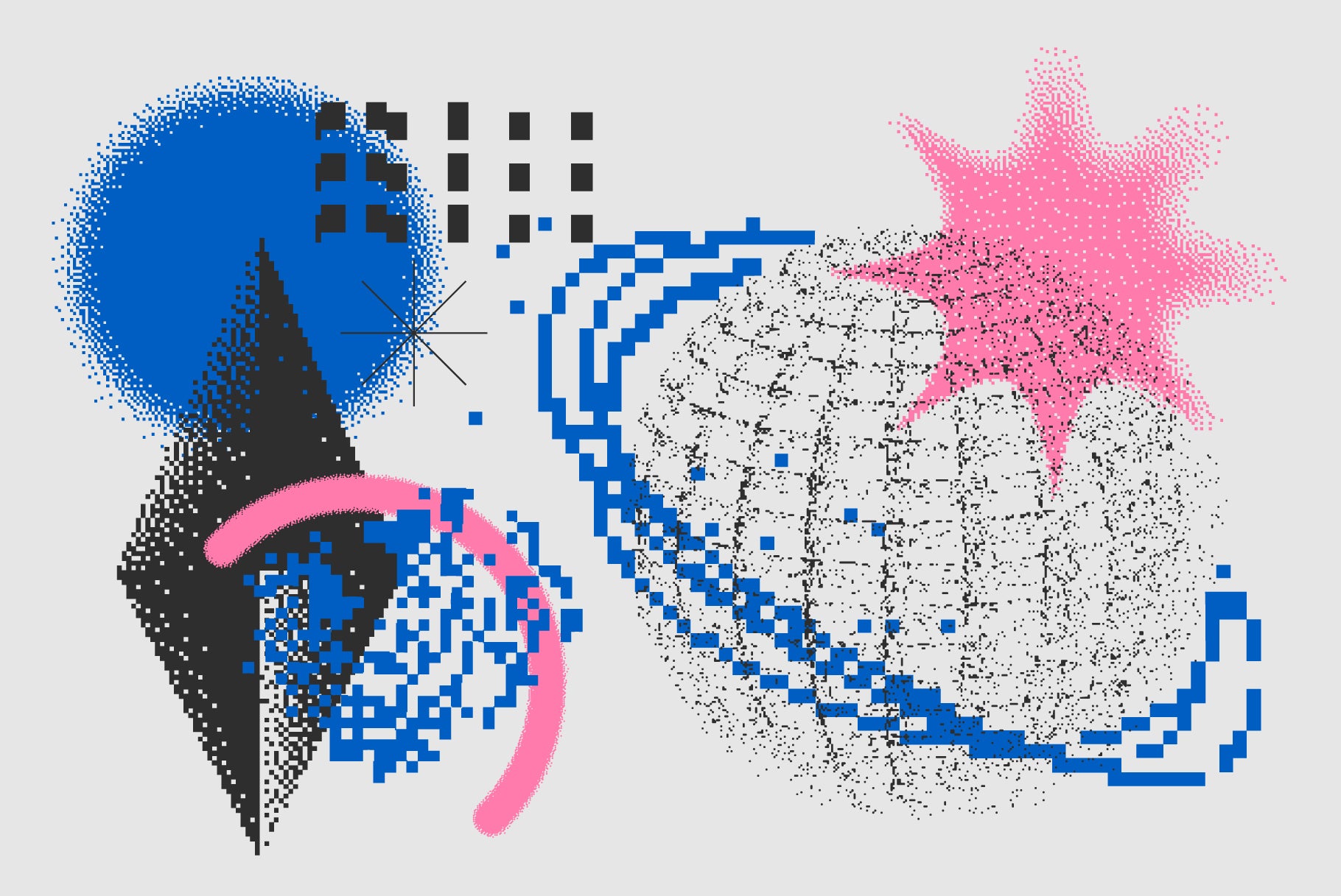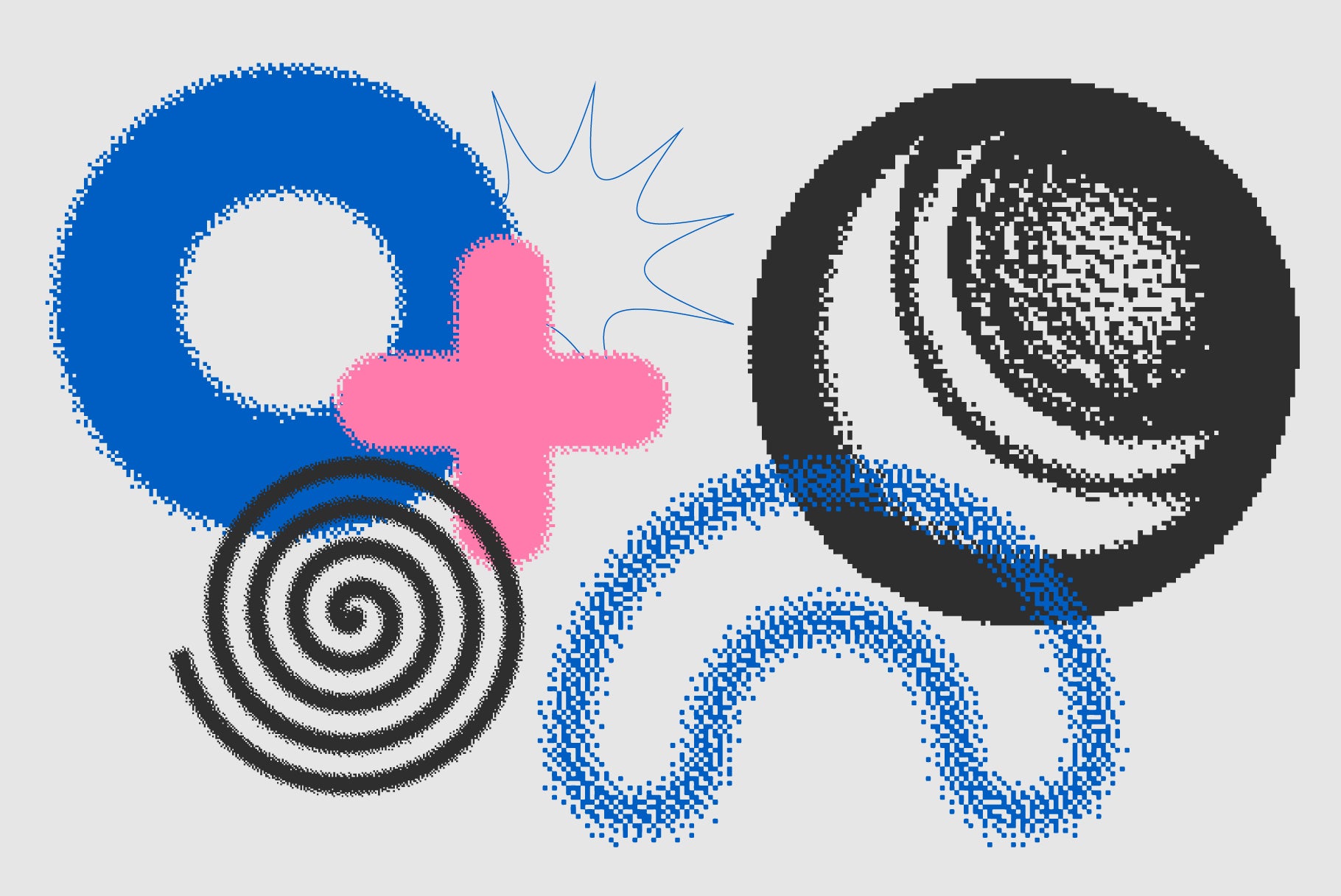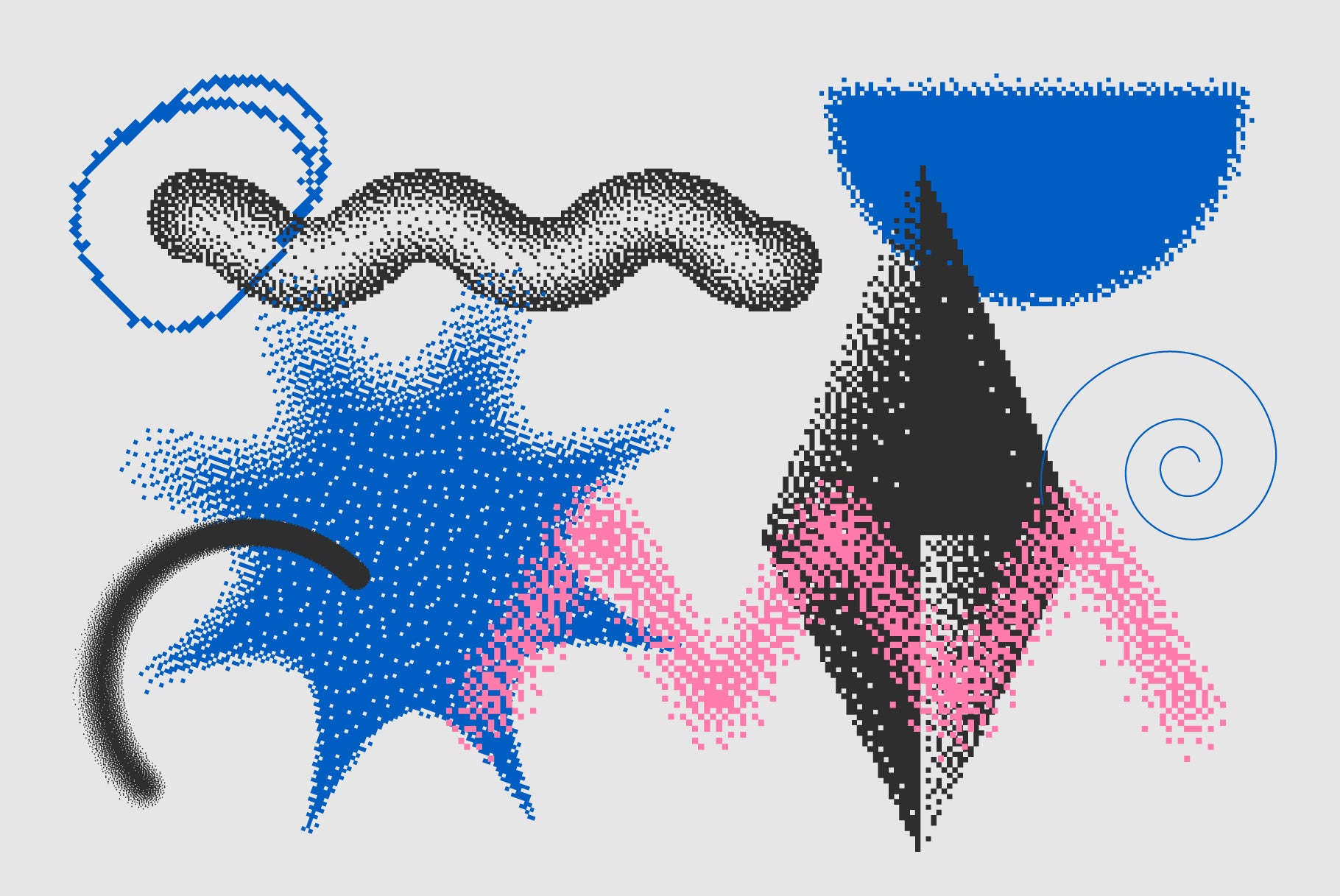 Each shape has a unique vector texture that imitates pixels like the dither effect in a raster image. Every object is carefully cleared of unnecessary redundant points so as not to overload your computer system. These formats are compatible with all popular graphic programs.