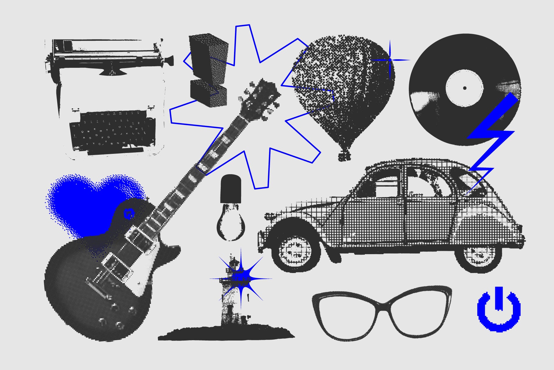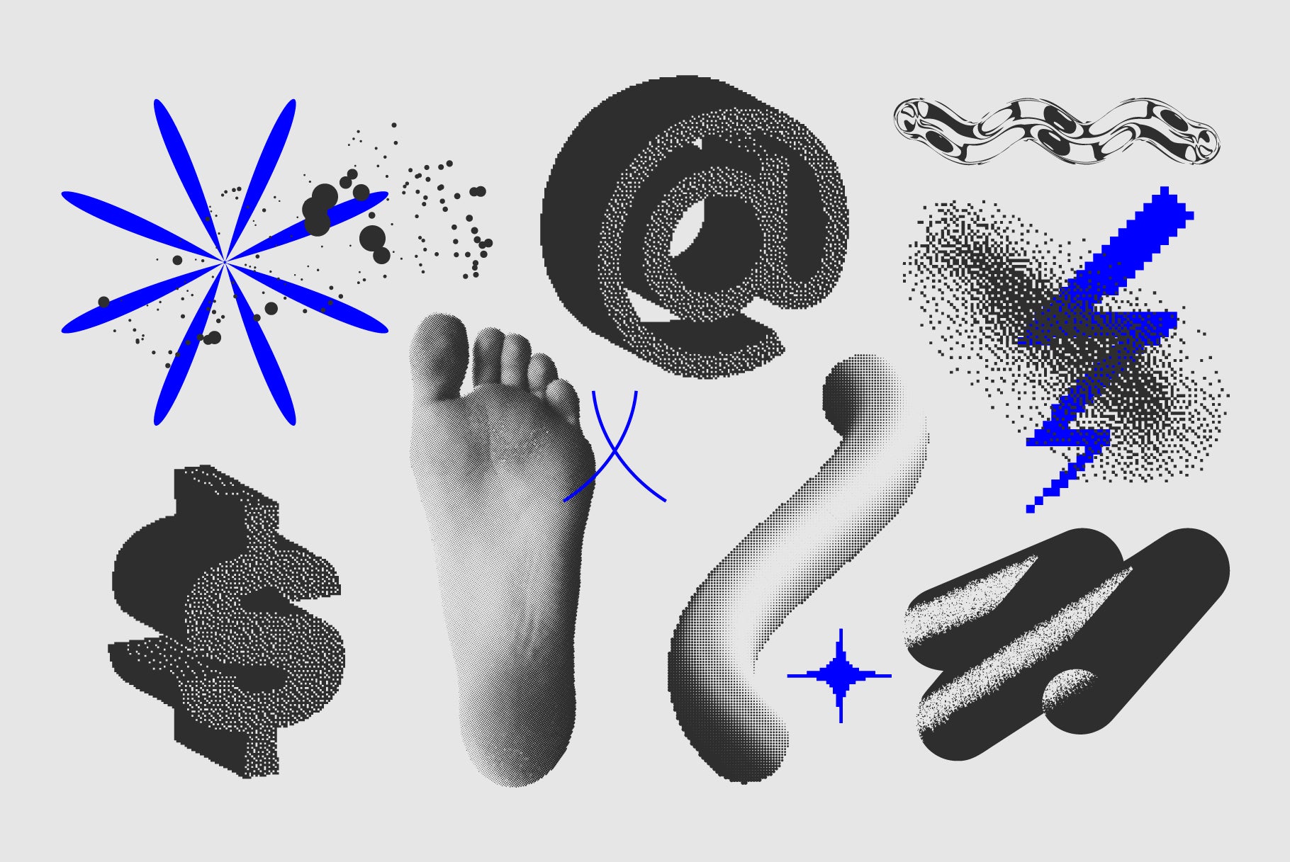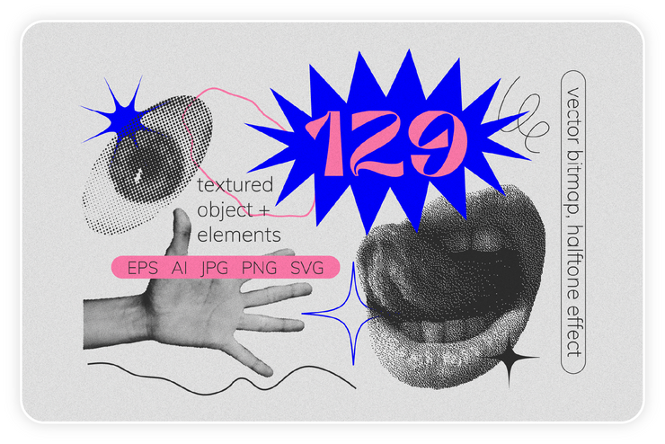 This amazing product gathers 129 amazing objects with unique digital textures and universal elements for your work, + a bonus of 11 compositions with objects and elements.