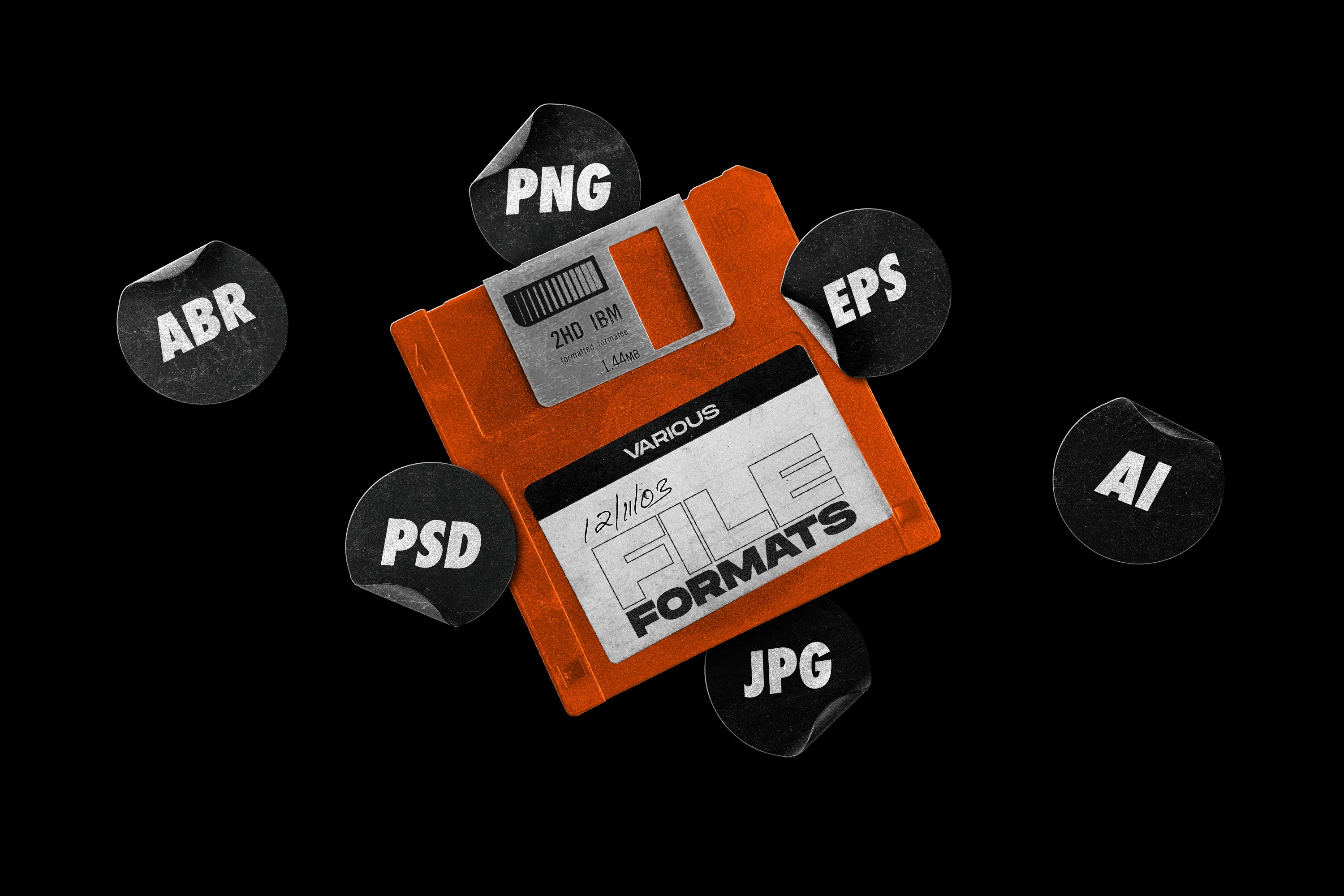 • ABR File: A library of 100 hi-res stamp brushes, accessible through Adobe Photoshop's Brushes Panel.