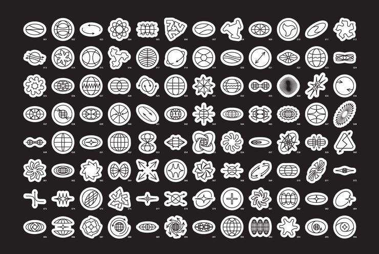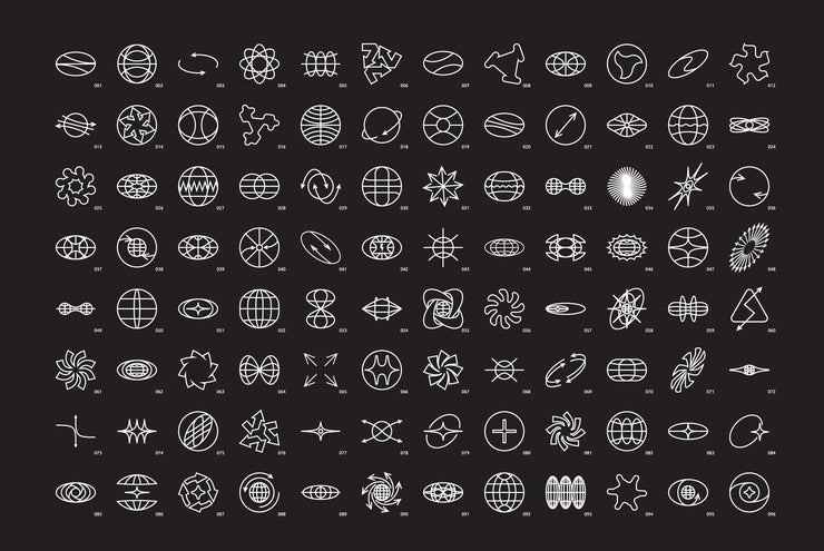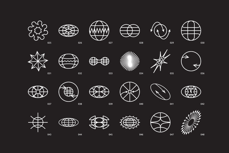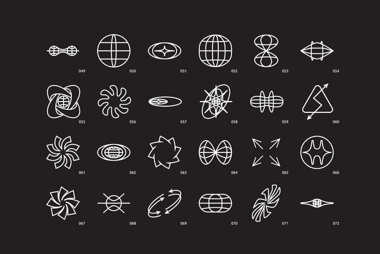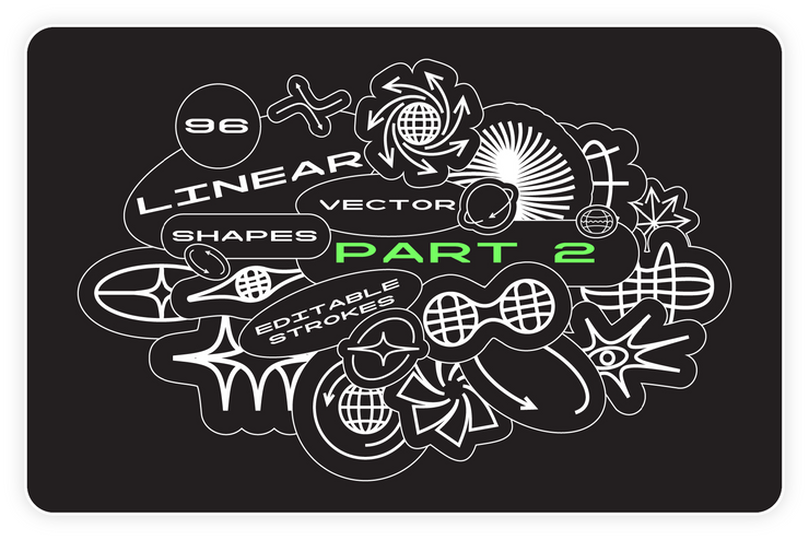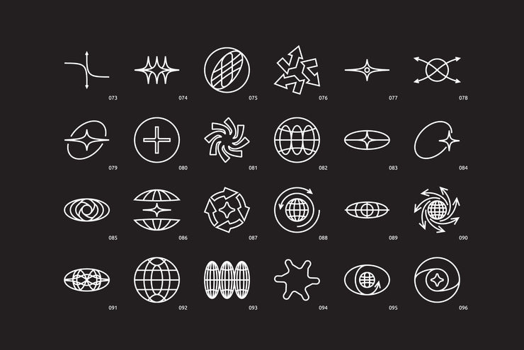 96 Linear Vector Shapes collection brings you incredibly varied high-quality geometric shapes based on popular graphic elements such as wireframe globes, arrows, vortex, stars, and other acid abstract shapes.