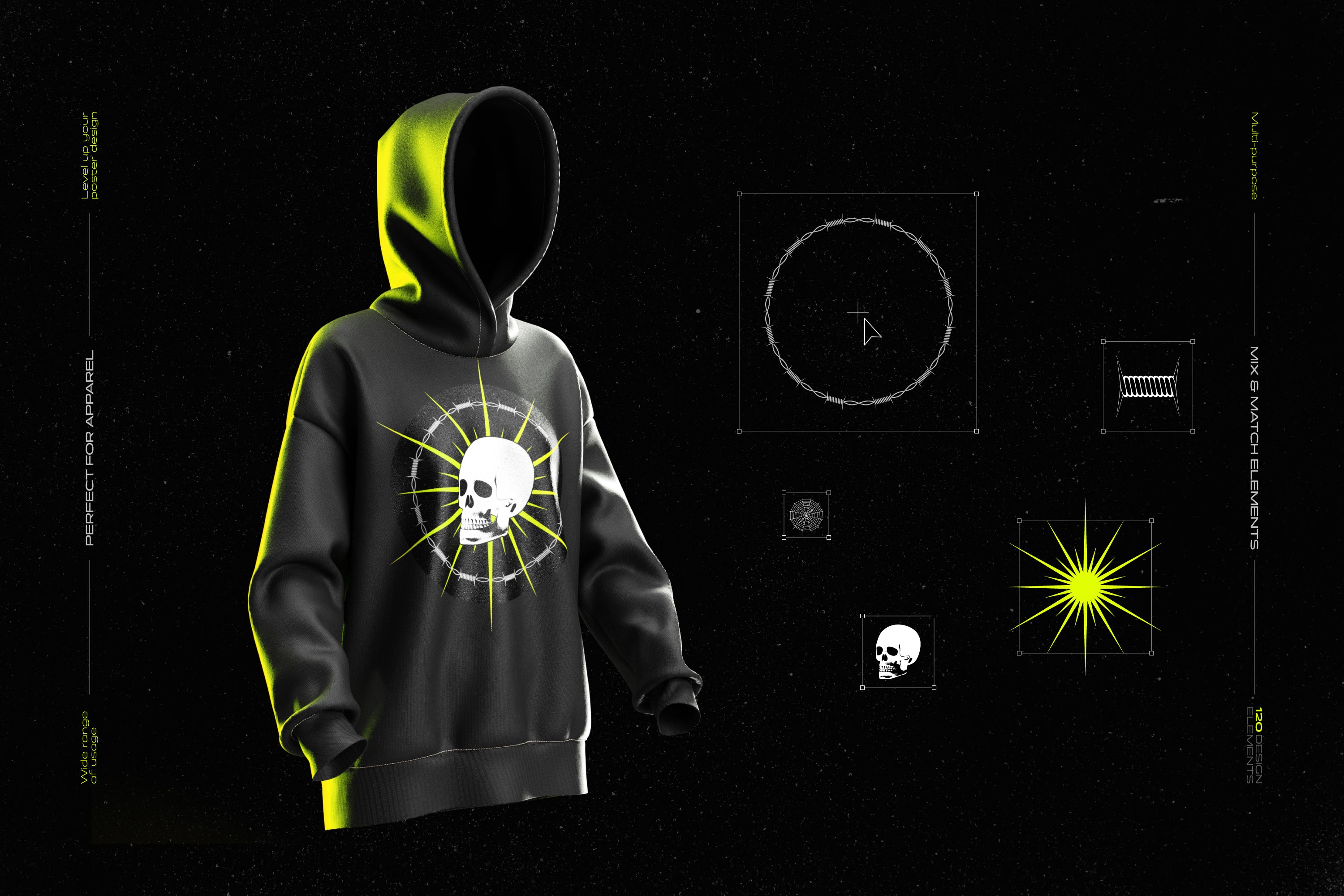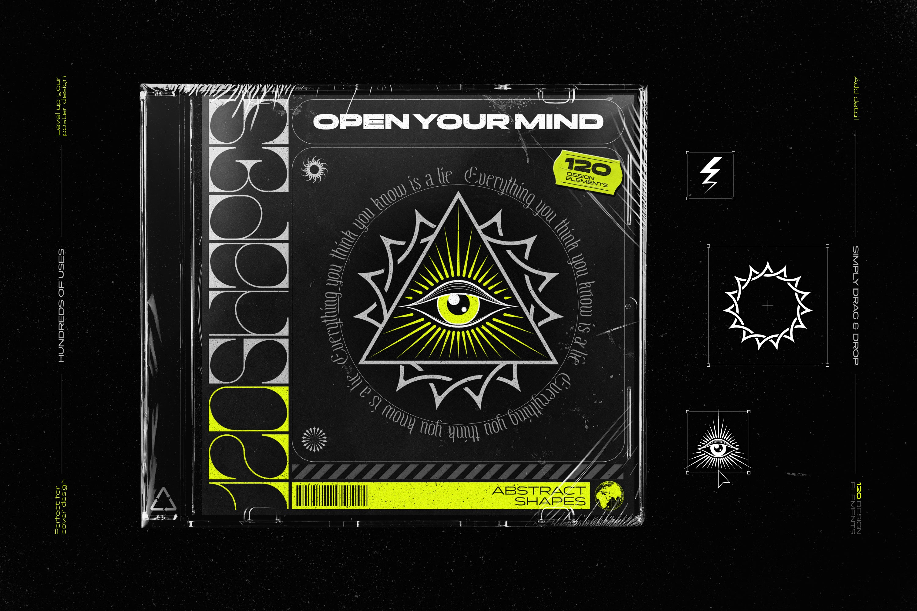 Trippy Symbols: Inspired by the rave culture, these symbols and illustrations are perfect for projects that demand a touch of the extraordinary and brutalism.