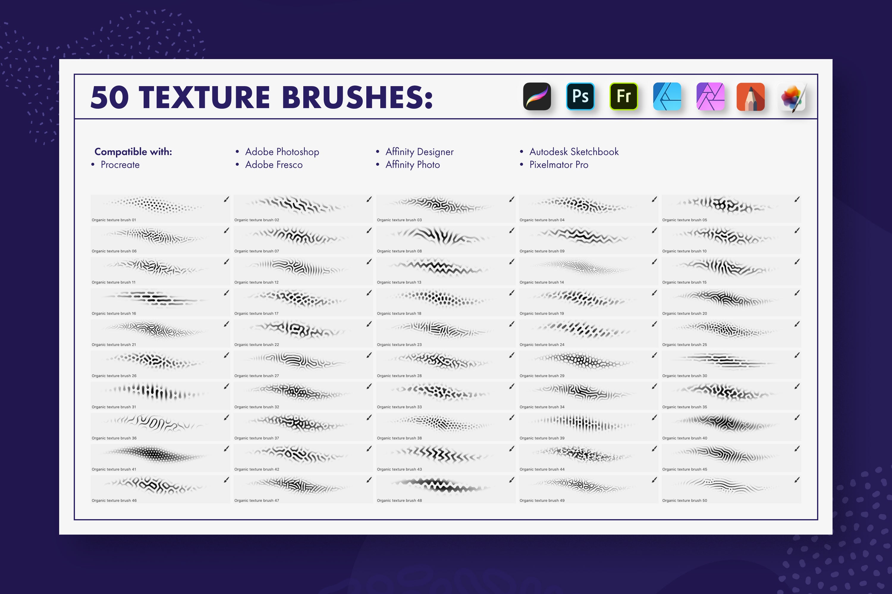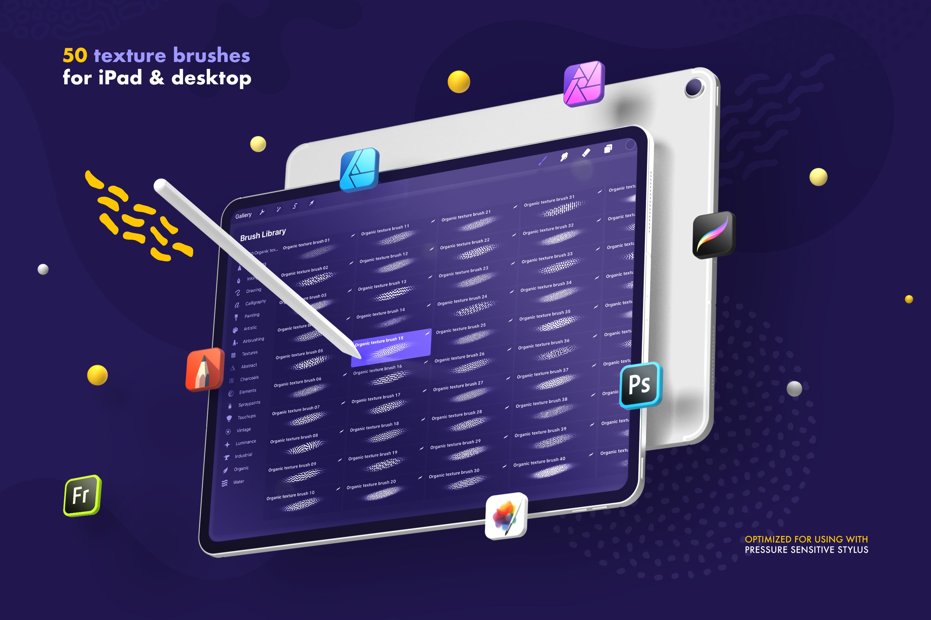 BRUSHSET File: a set of 50 texture brushes for the Procreate app.