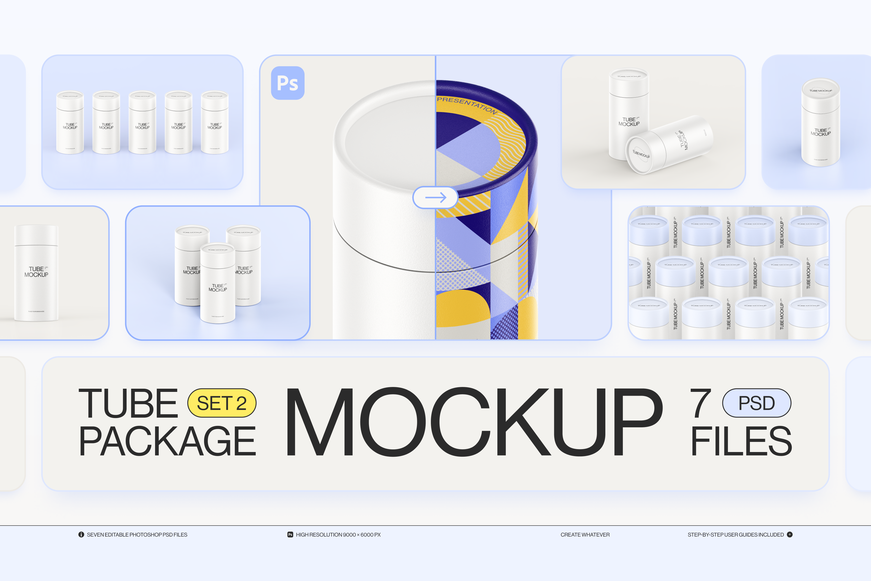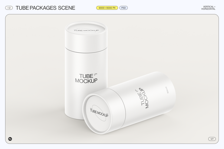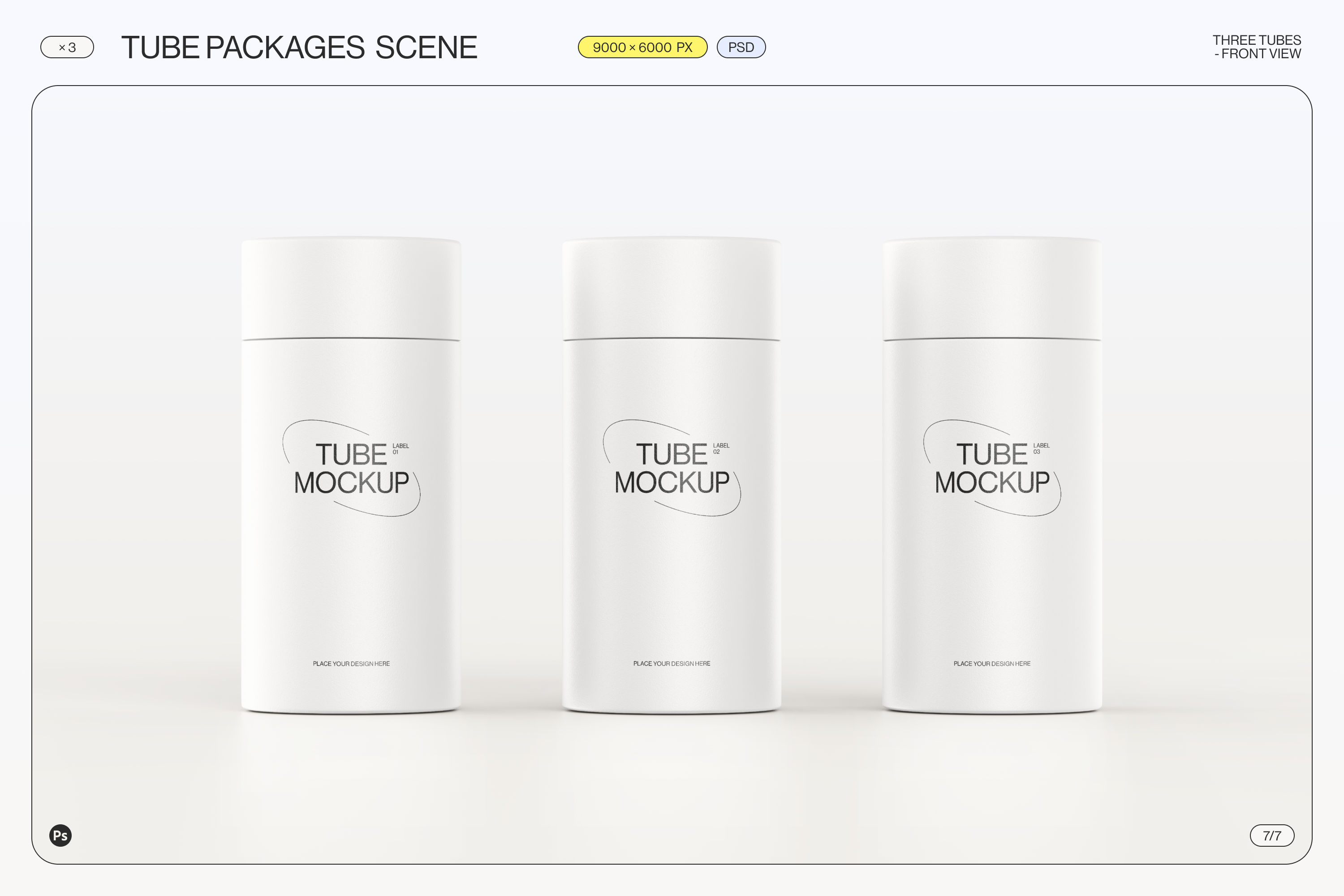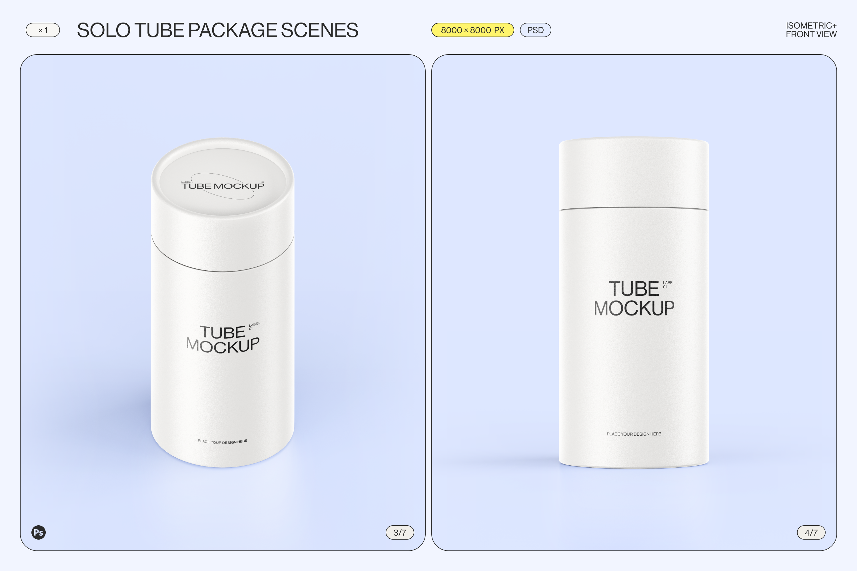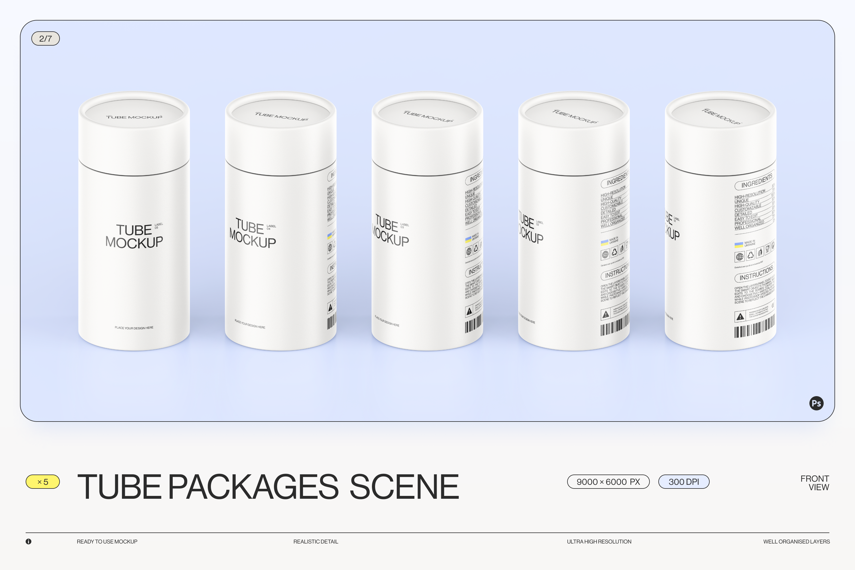 Seven Unique Scenes: The set features seven unique scenes, offering a variety of arrangements to display your tube packaging designs. From individual tube scenes to grouped compositions, this versatile selection meets every packaging presentation requirement.